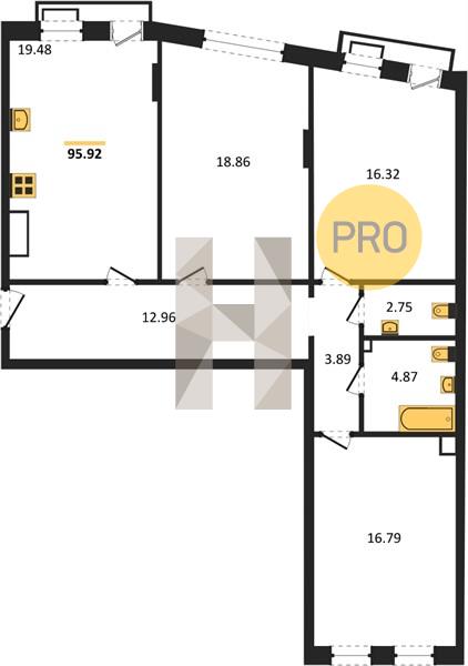 3-комн. квартира, 95.92 м² 11 865 304,0 ₽