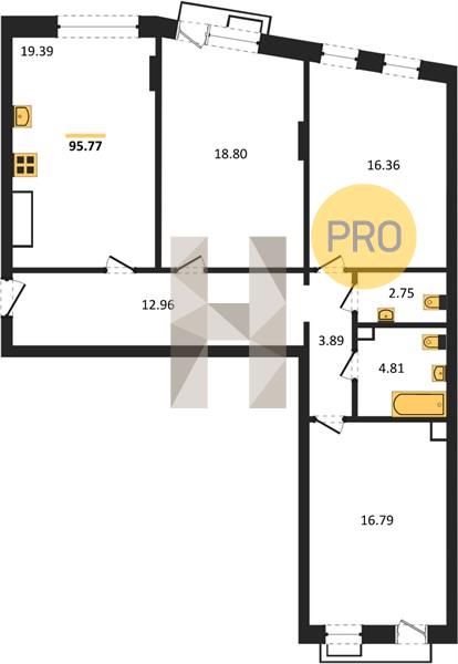 3-комн. квартира, 95.77 м² 11 846 749,0 ₽