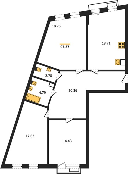 3-комн. квартира, 97.37 м²