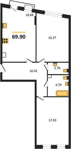 2-комн. квартира, 69.89 м² 9 812 556,0 ₽