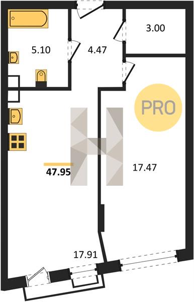 1-комн. квартира, 47.95 м² 8 151 500,0 ₽