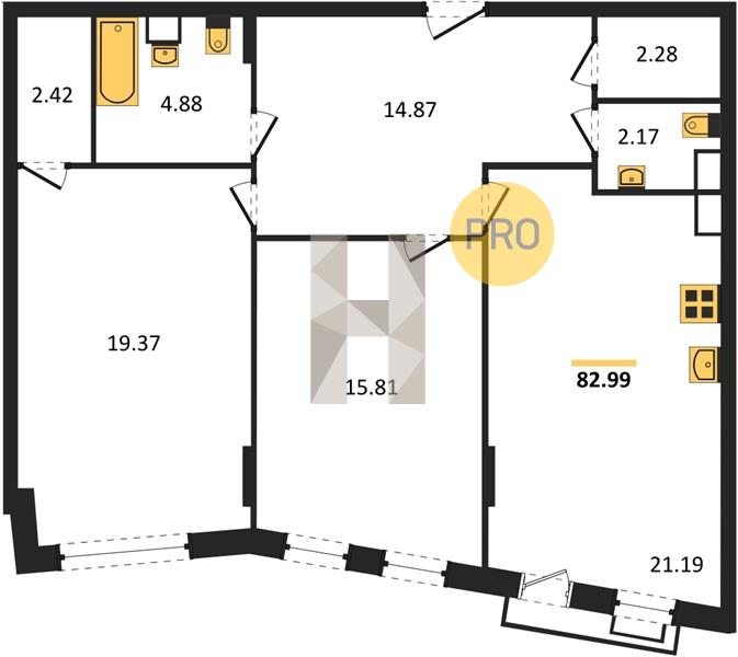 2-комн. квартира, 82.99 м² 11 045 969,0 ₽