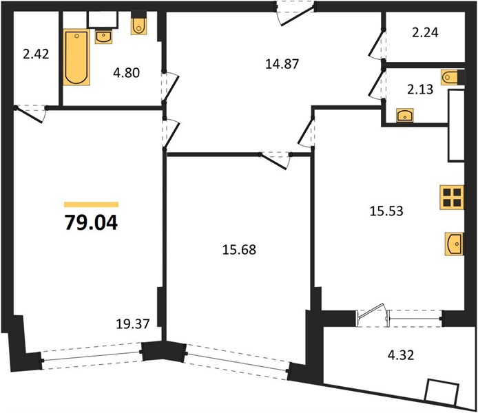 2-комн. квартира, 79.19 м²