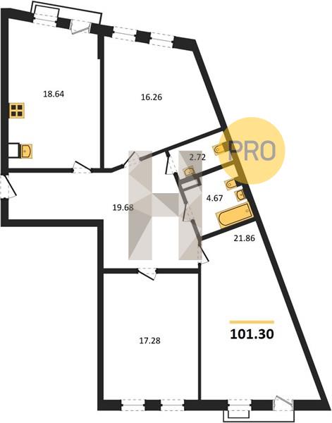 3-комн. квартира, 101.11 м²