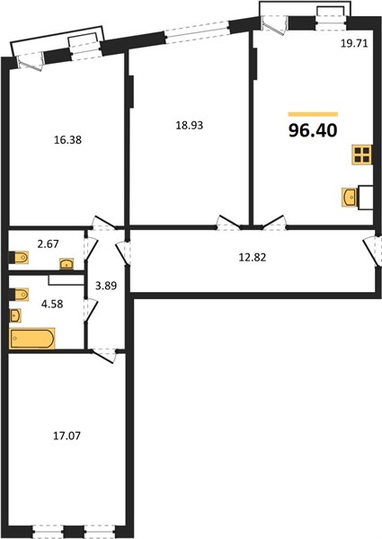 3-комн. квартира, 96.04 м²