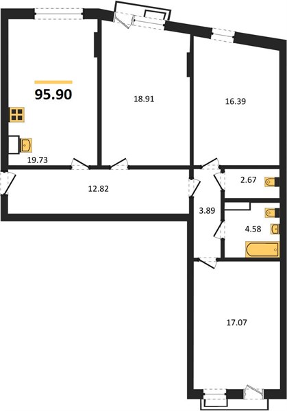3-комн. квартира, 96.05 м² 11 881 385,0 ₽