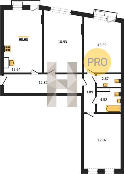 3-комн. квартира , 95.93 м²