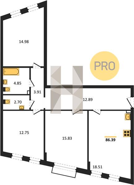 3-комн. квартира, 86.39 м²