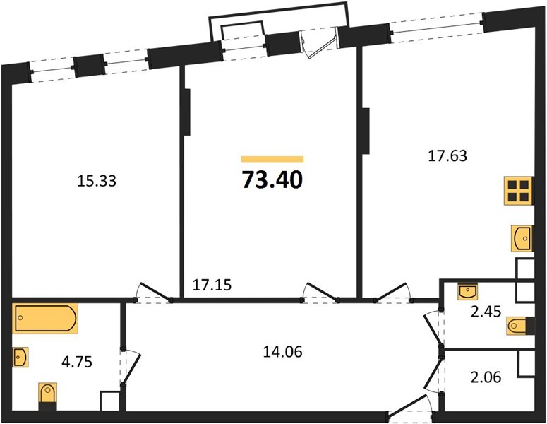 2-комн. квартира, 73.43 м² 9 802 905,0 ₽