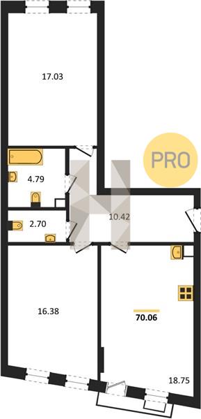 2-комн. квартира, 70.06 м²