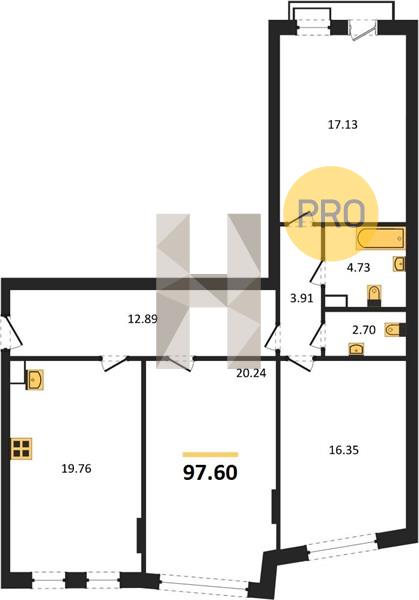 3-комн. квартира, 97.69 м²