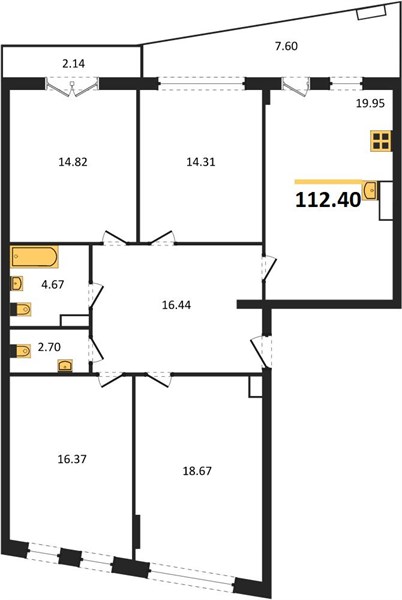 4-комн. квартира, 112.80 м²