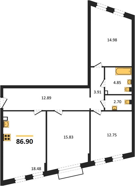 3-комн. квартира, 86.36 м²