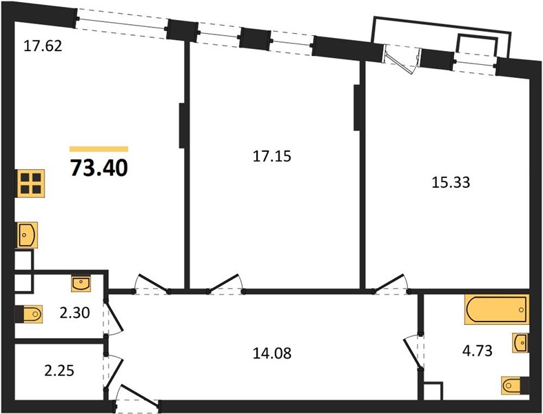 2-комн. квартира, 73.46 м²