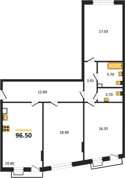 3-комн. квартира, 96.36 м² 11 919 732,0 ₽