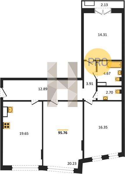 3-комн. квартира, 95.76 м²