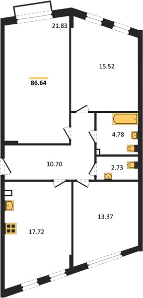 3-комн. квартира, 86.64 м² 10 717 368,0 ₽