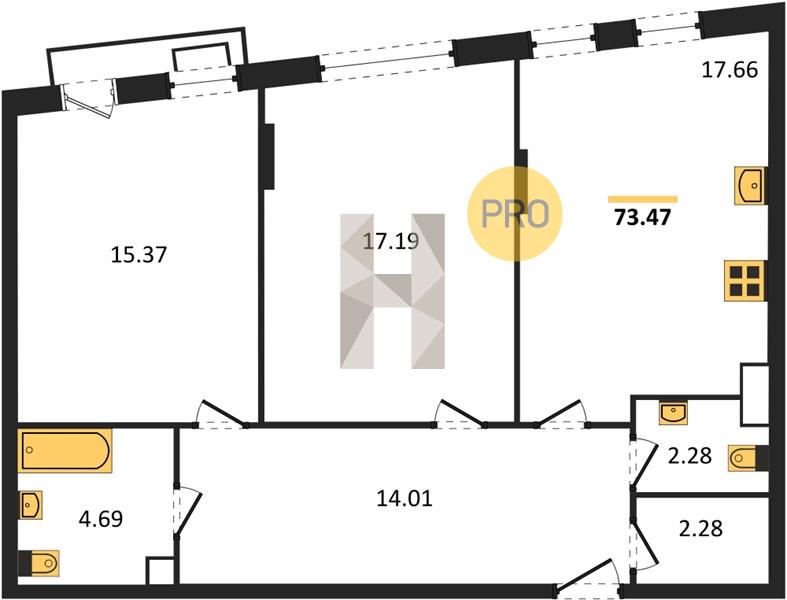 2-комн. квартира, 73.47 м² 9 808 245,0 ₽