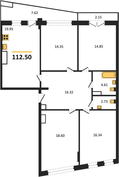 4-комн. квартира, 112.63 м²