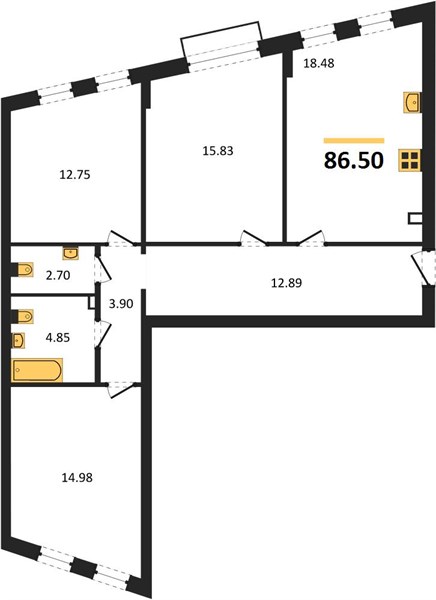 3-комн. квартира, 86.36 м²