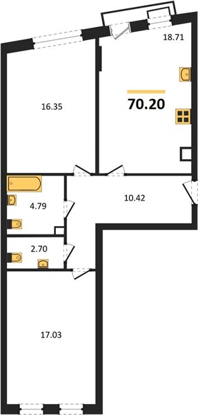 2-комн. квартира, 70.00 м² 9 744 000,0 ₽