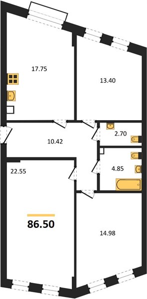 3-комн. квартира, 86.65 м²