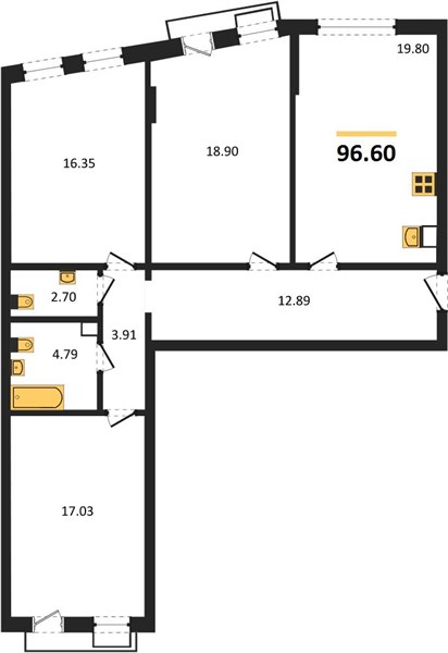 3-комн. квартира, 96.36 м²